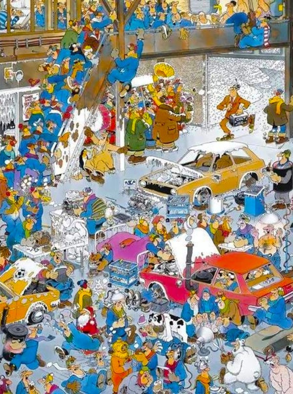 Bestelnr. 2106. AUTO'S IN DE MAAK. Afmeting = 49.x.65 cm. Aantal = 950 stukjes.