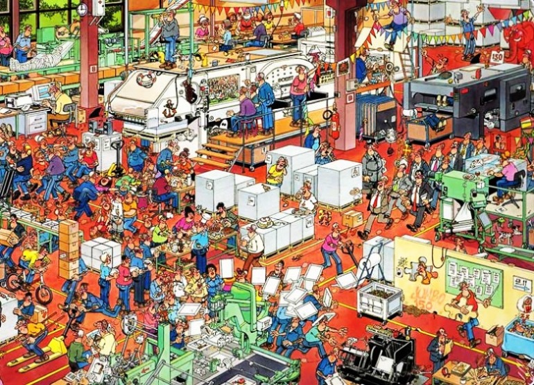 Bestelnr. 2109. DE PUZZELFABRIEK ( Jumbo 150 jaar ). Afmeting = 68 x 49 cm. Aantal = 1000 stukjes. Incl. A-4 print.