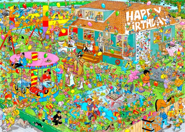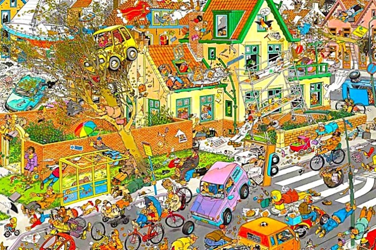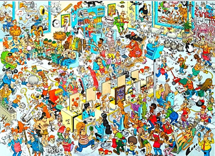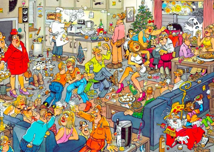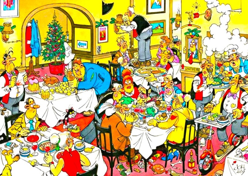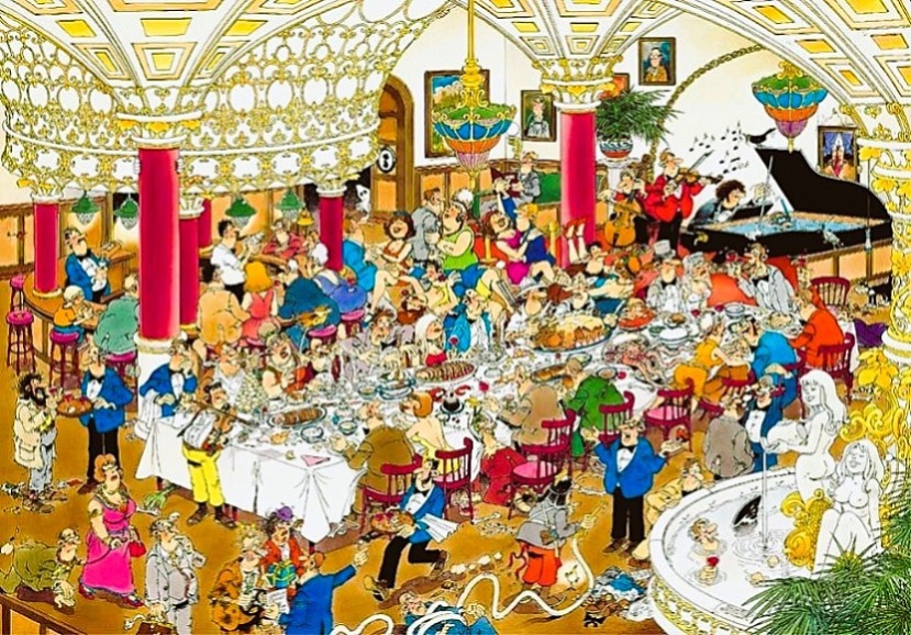 Bestelnr. 2104. CHAOTISCH DINER. Afmeting = 49 x 35 cm. Aantal = 500 stukjes.