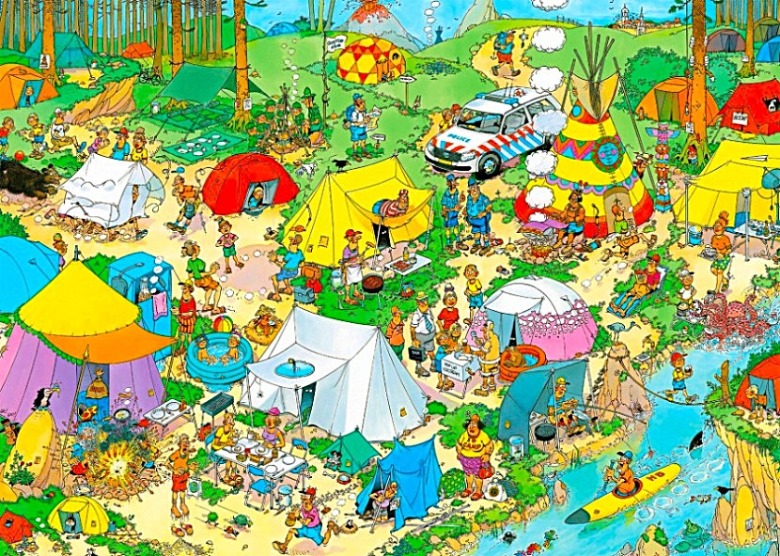 Bestelnr. 2140. KAMPEREN IN HET BOS. Afmeting = 68 x 48 cm. Aantal = 1000 stukjes. Inclusief A-4 foto-print.