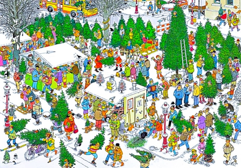 Bestelnr. 2130. DE KERSTBOMENMARKT. Afmeting = 68 x 49 cm. Aantal = 1000 stukjes. Inclusief poster.