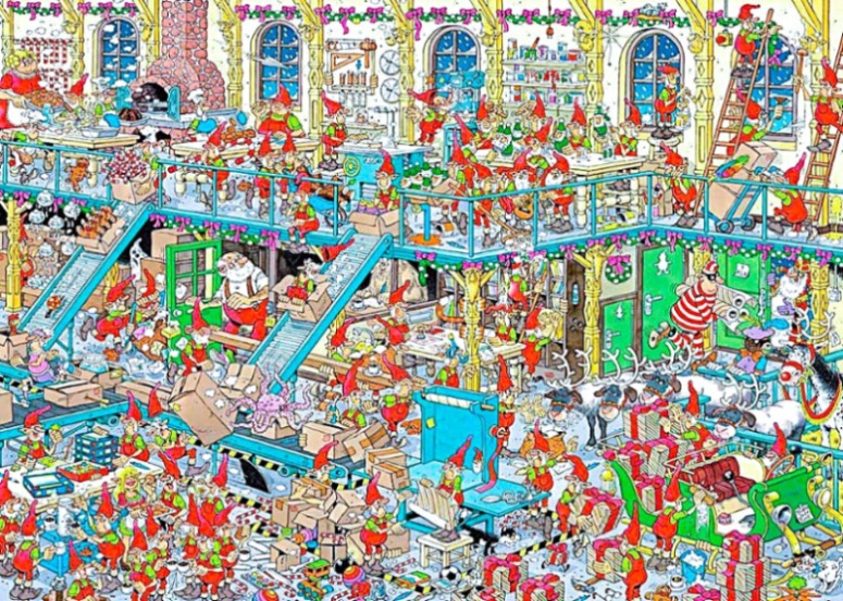 Bestelnr. 2146. FABRIEK VAN DE KERSTMAN. Afmeting = 68 x 49 m. Aantal = 1000 stukjes. Inclusief A-4 foto-print.